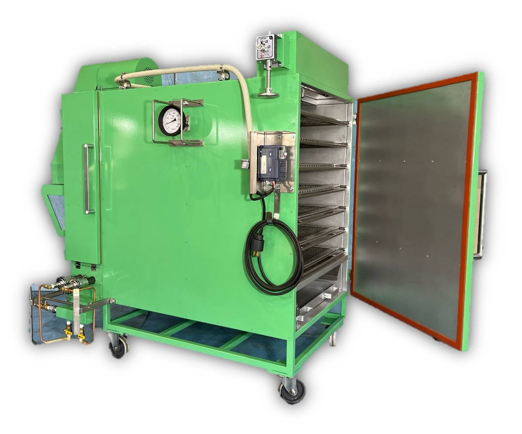 上部から強力なブロワーで熱風ろ均等に当て、下から吸い込み循環させることで温度差をなくし、熱が逃げにくくなっております。